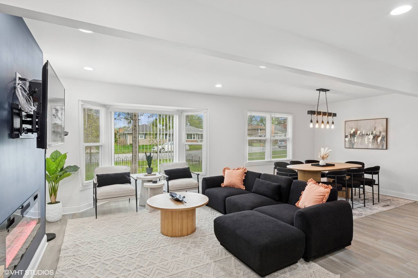 ➜ Fully remodeled 3 beds, 2 bath home with modern finishes ➜ Spacious backyard with, pergola, seating areas, and outdoor games ➜ Smart TVs in every room ➜ Game room with pool table, ping pong and family games ➜ Large private backyard with pergola, seating areas and outdoor playgrounds.